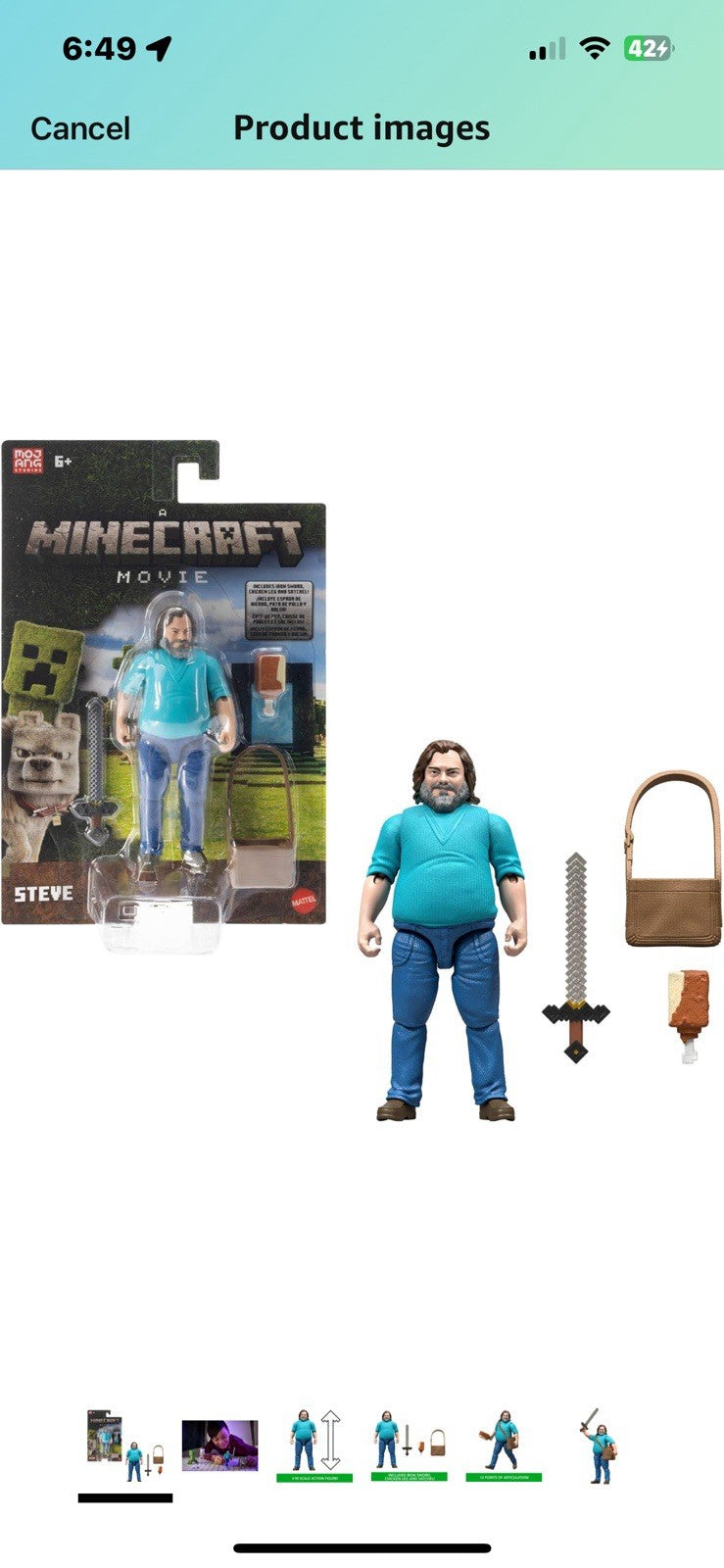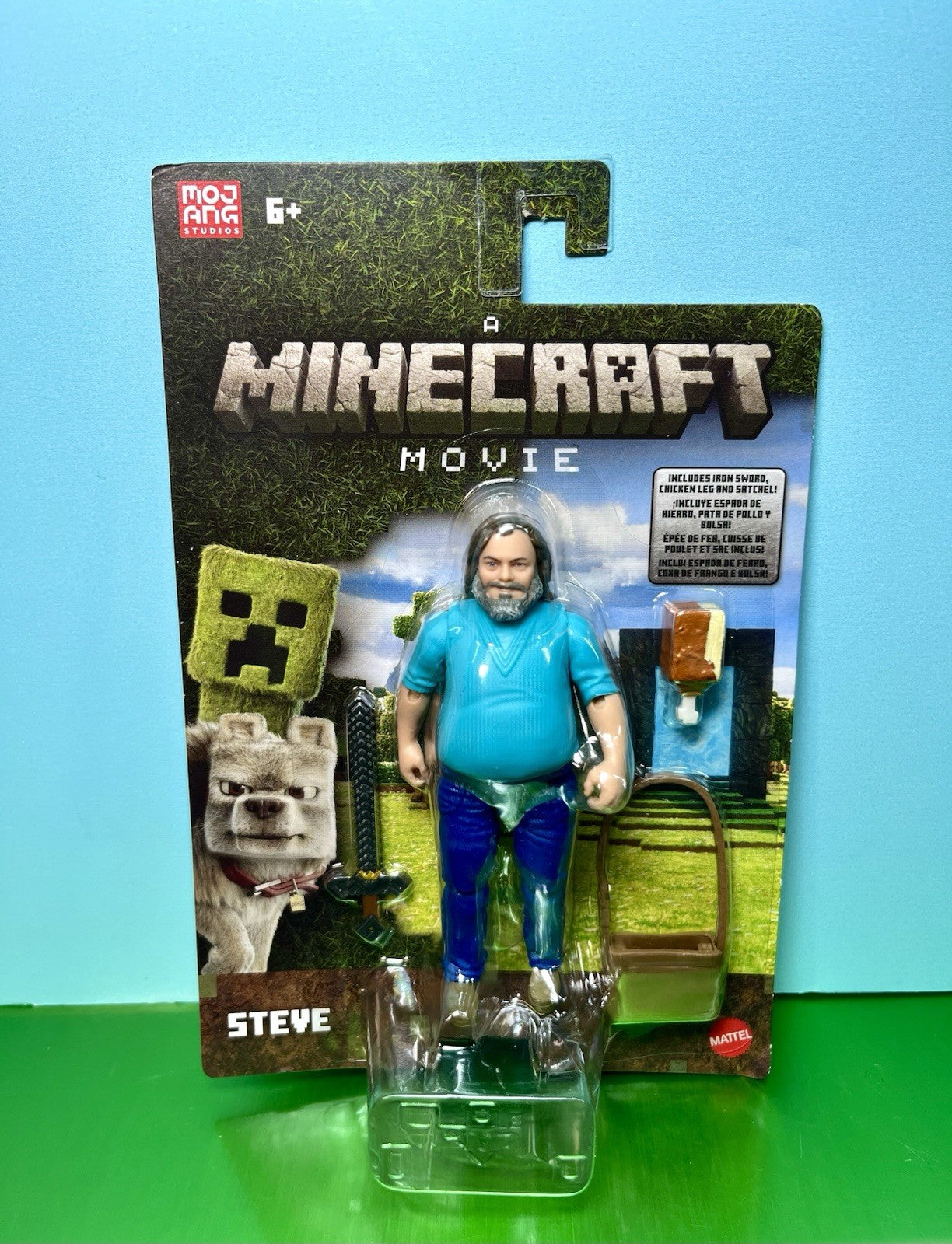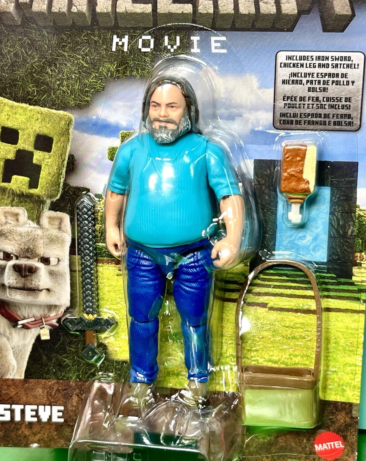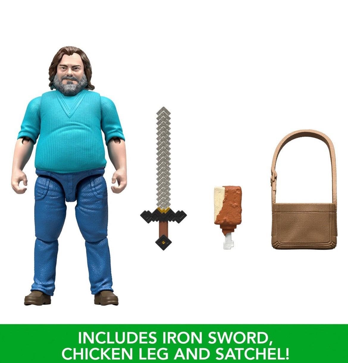 2025 Mattel - A Minecraft Movie 4in Figure: STEVE/JACK BLACK (w/ Sword, Satchel)